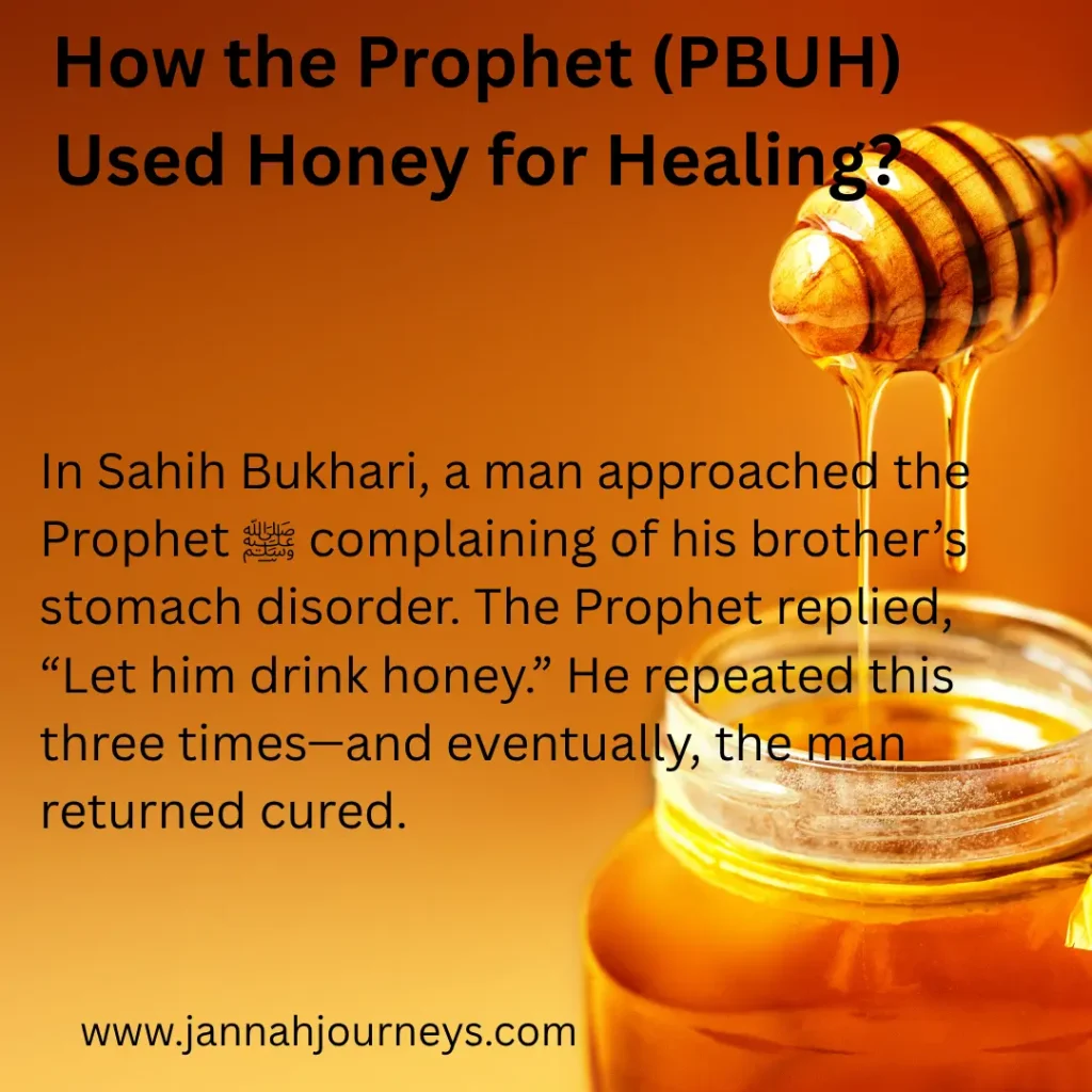 In Sahih Bukhari, a man approached the Prophet ﷺ complaining of his brother’s stomach disorder. The Prophet replied, “Let him drink honey.” He repeated this three times—and eventually, the man returned cured.
